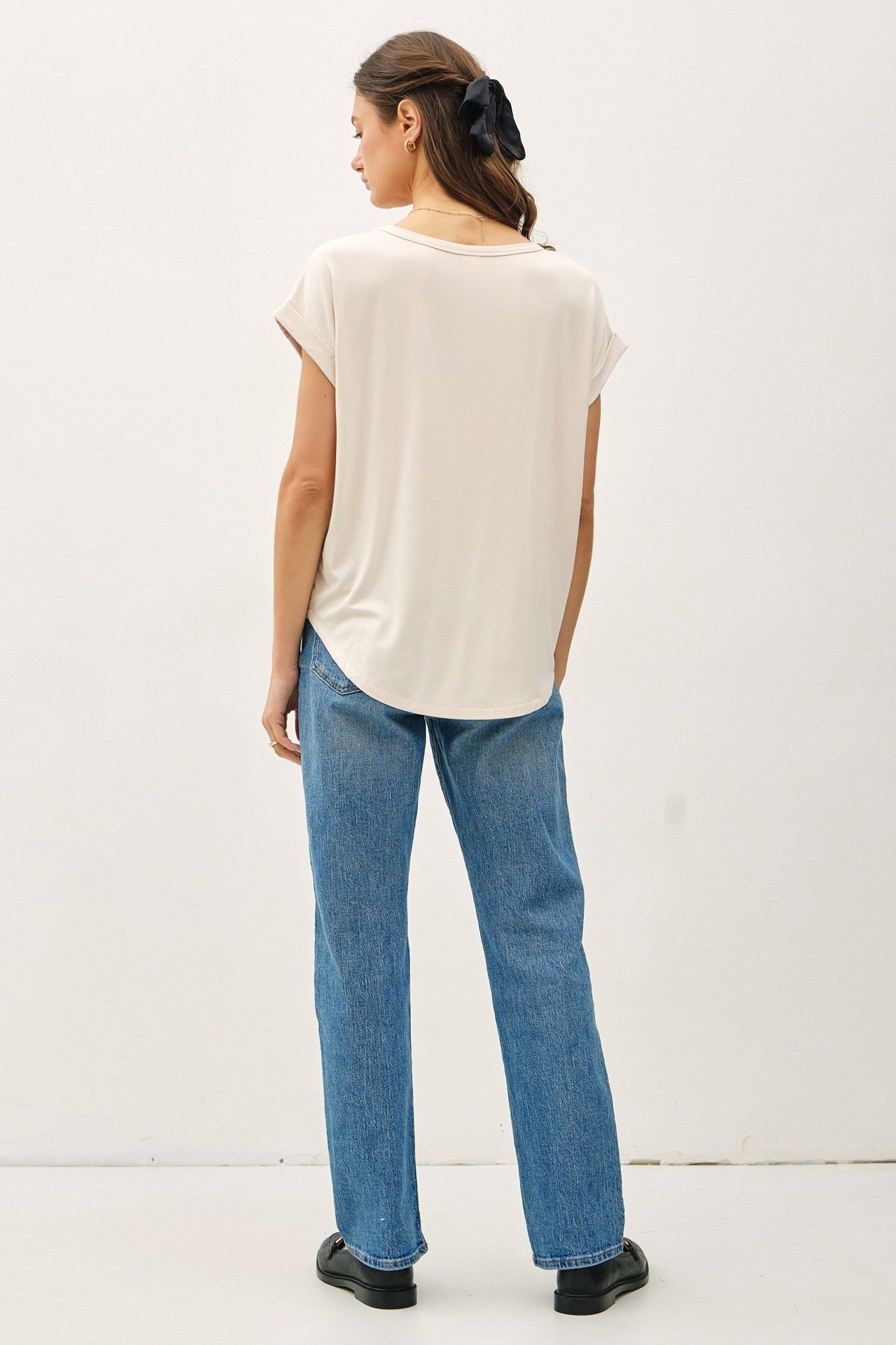 Basic oversized boat neck cap-sleeve t-shirt. Made with natural bamboo/modal fibers. Cool to the touch and drapes beautifully on body!