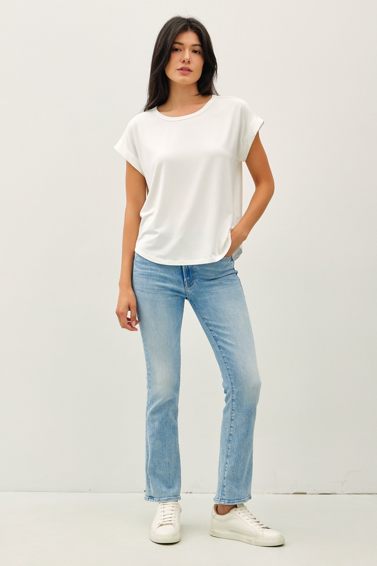 Basic oversized boat neck cap-sleeve t-shirt. Made with natural bamboo/modal fibers. Cool to the touch and drapes beautifully on body!