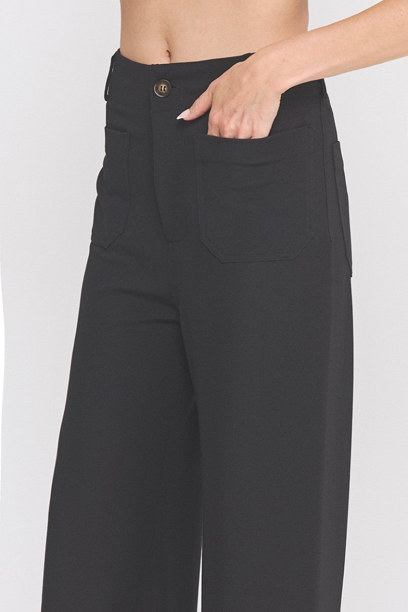 Step into comfort and style with these wide-leg dress pants! Featuring soft, stretchy fabric and handy front pockets, they move with you all day long. Perfect for adding a playful twist to your workwear or weekend looks, these pants are your new go-to for effortless chic.
