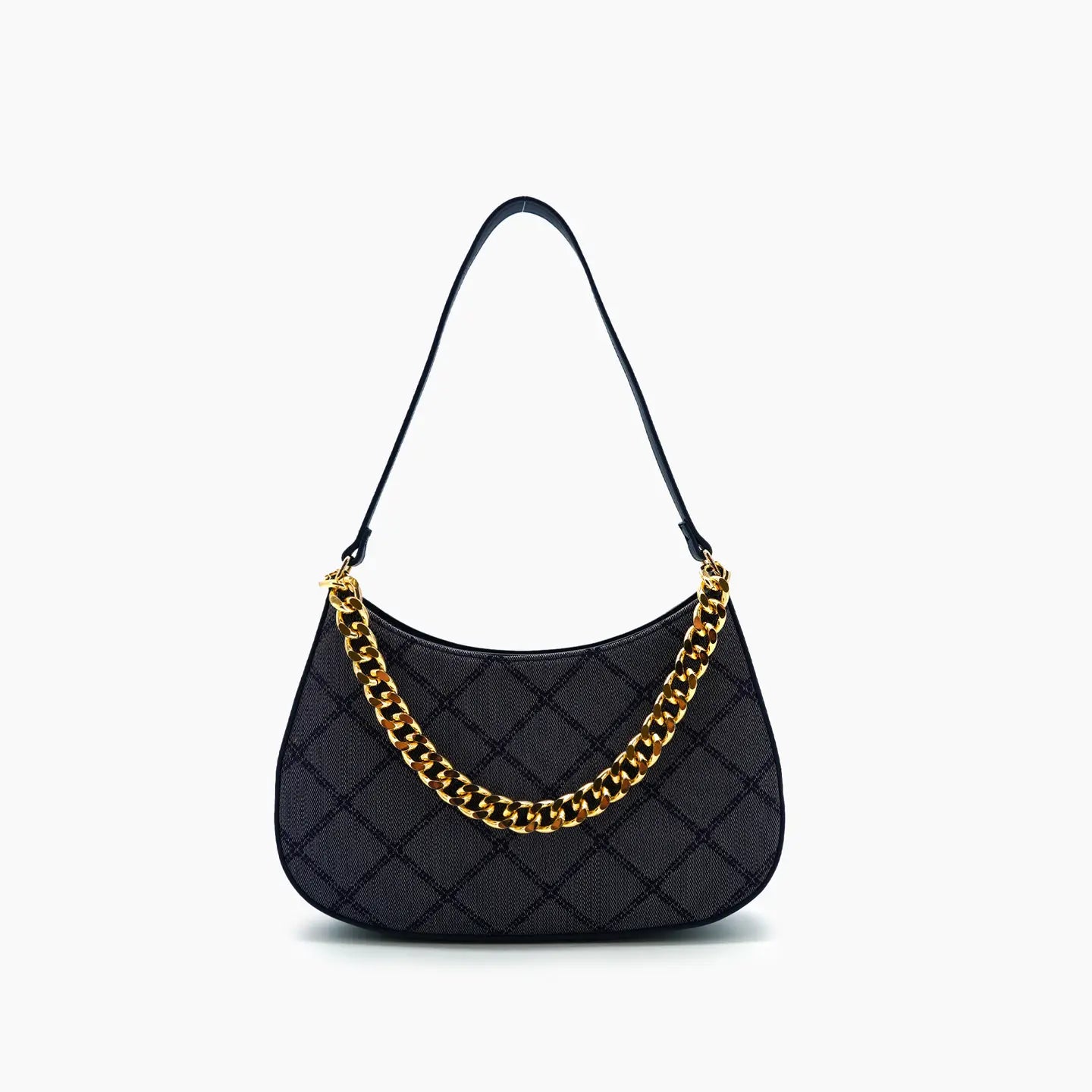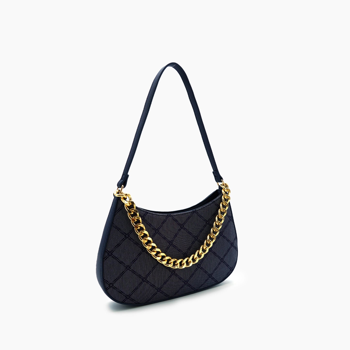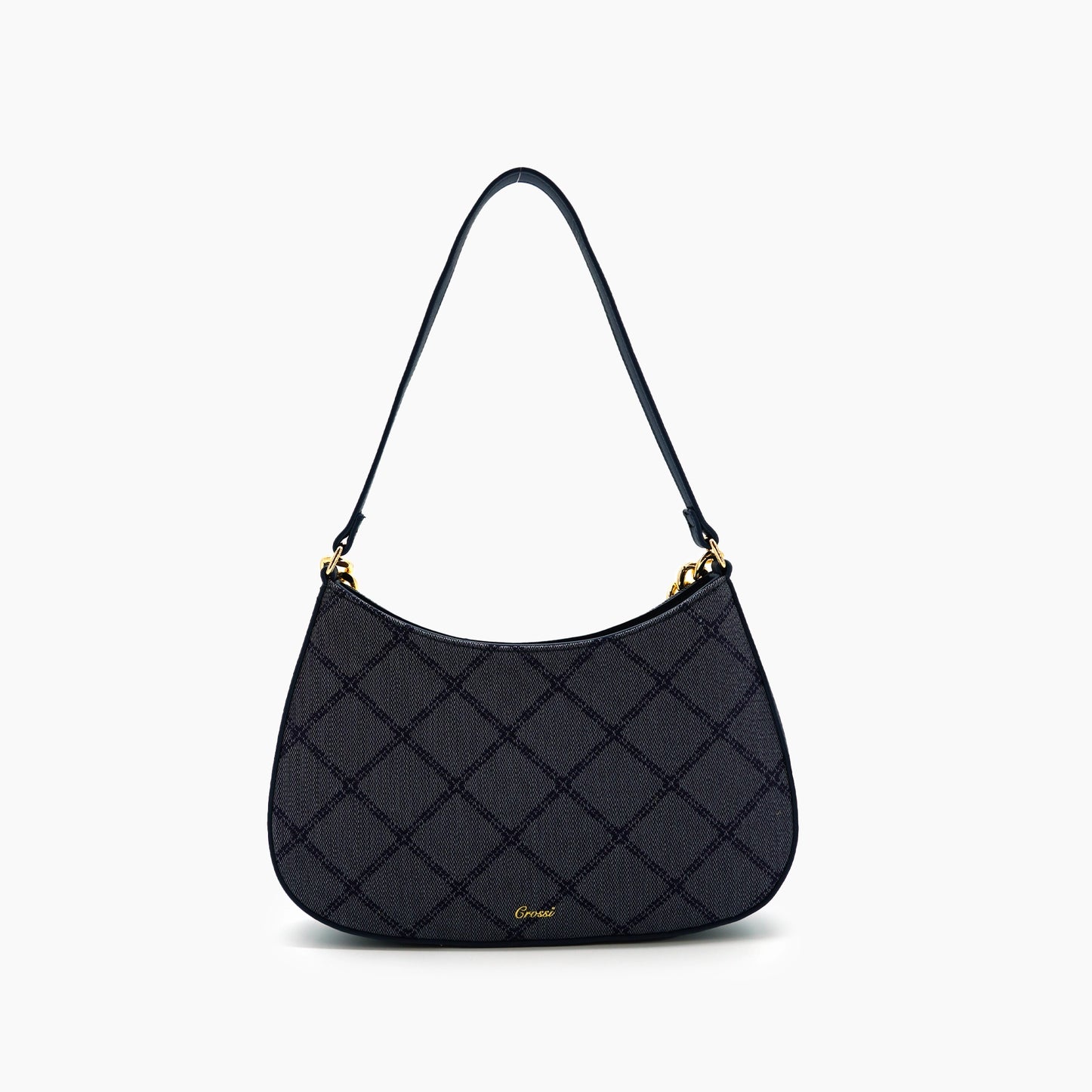 Introducing the Mira, a shoulder bag made for elevated everyday moments. Its refined structure and black hue create a sophisticated mood, while subtle details like gold hardware and cross -stitch pattern design - gold charm detail offer just the right edge. Style it with denim and a blazer or a flowy weekend dress.