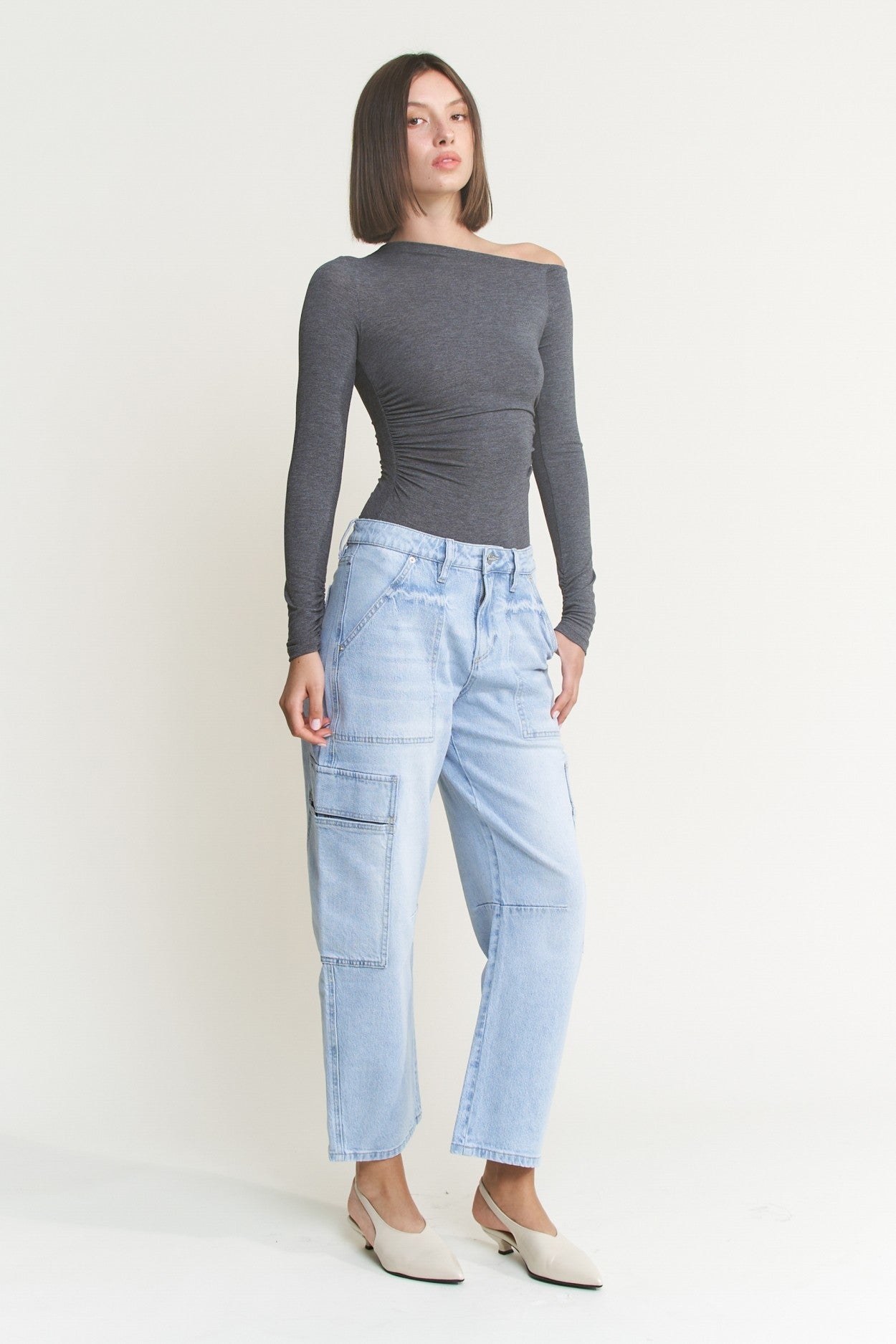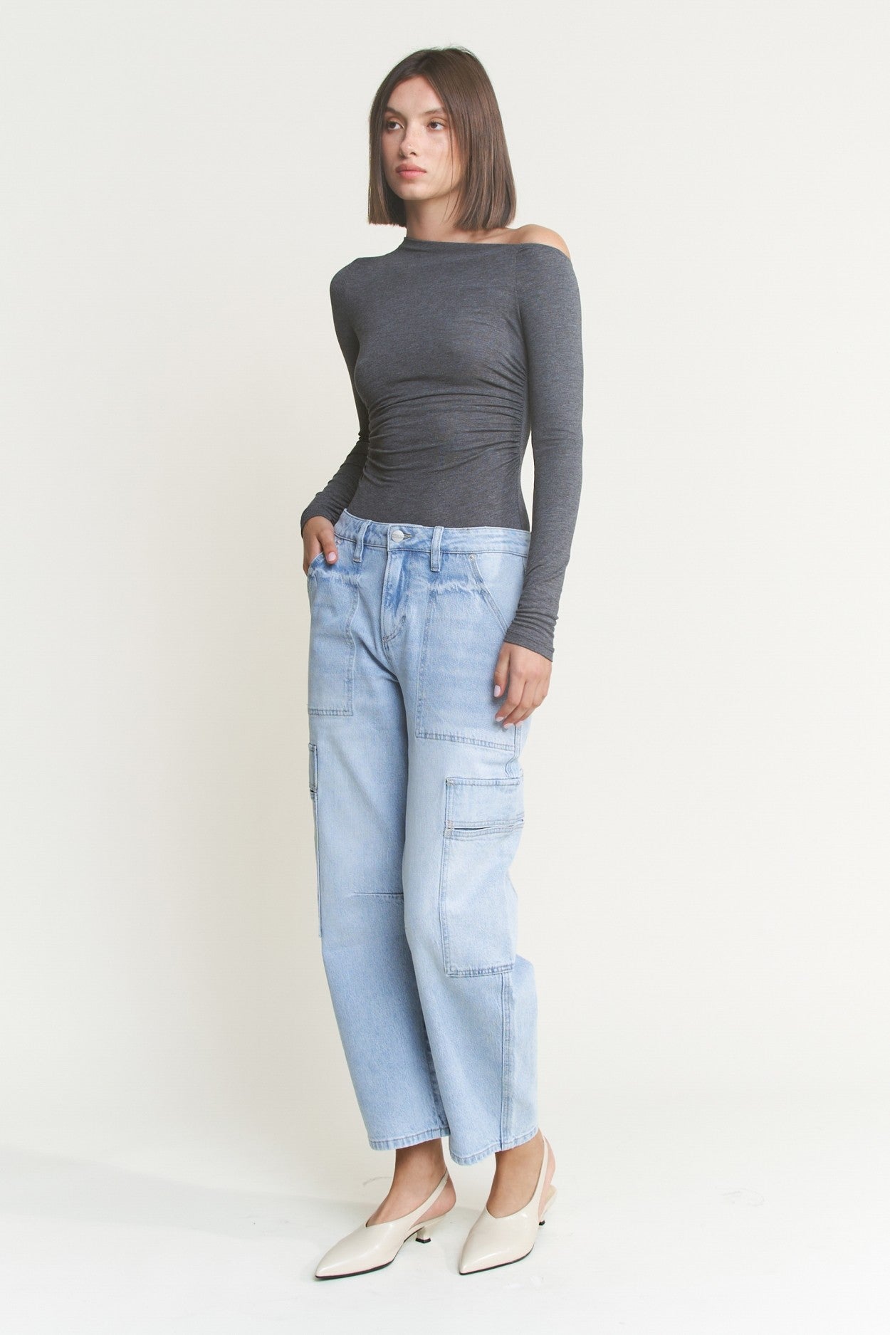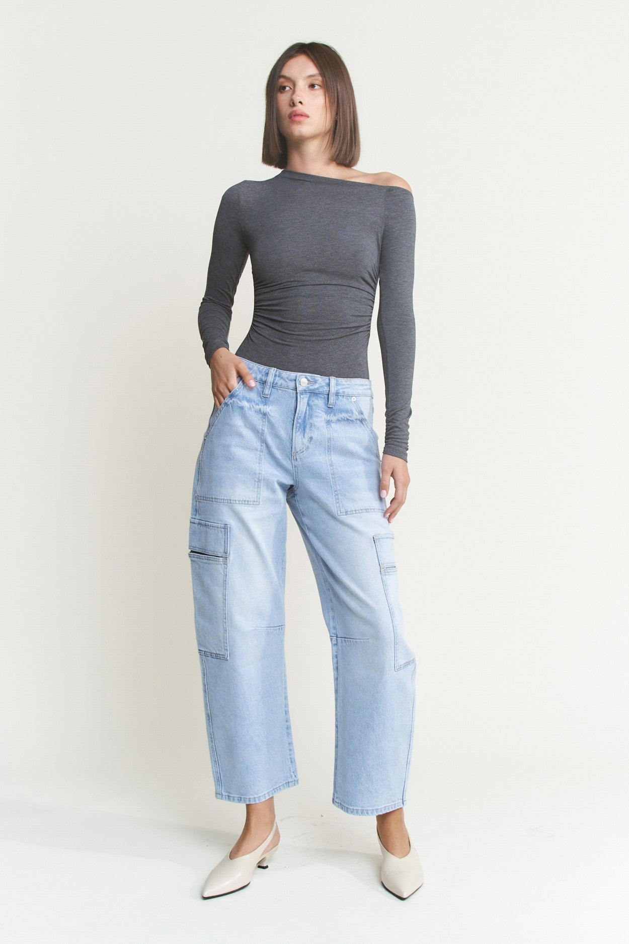 SUPER HIGH RISE BARREL-LEG W/CROPPED CARGO.