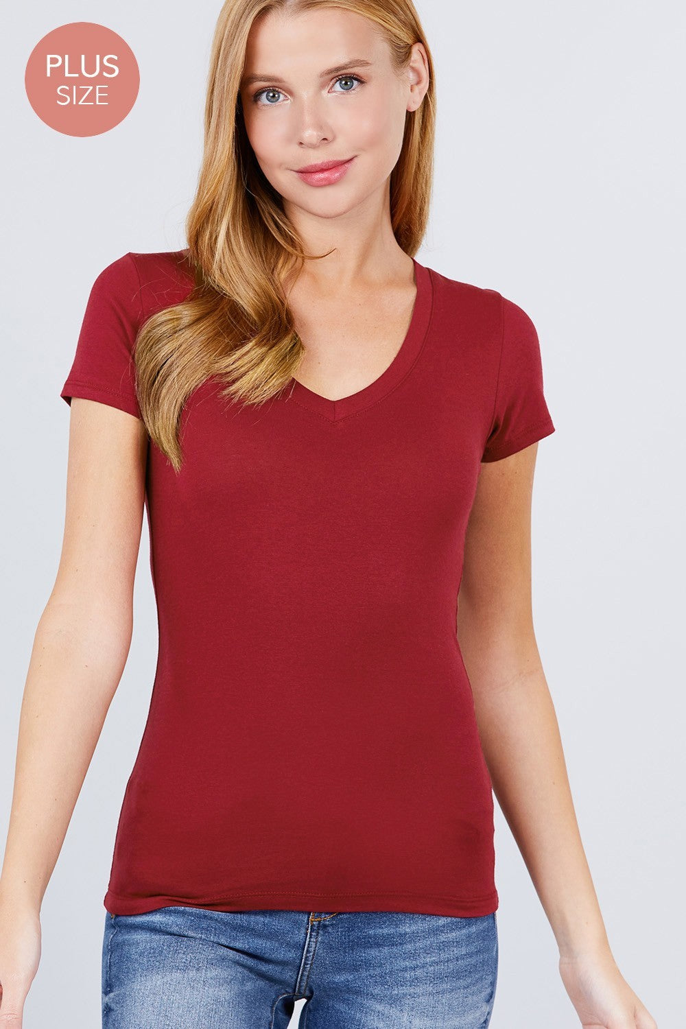 SHORT SLEEVE V-NECK TOP JERSEY COTTON SPANDEX