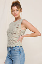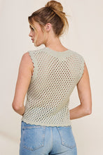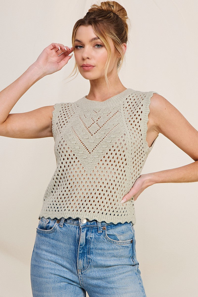 Pointelle Sweater Tank with Scallop EdgesFabric: 65% Acrylic, 35% Polyamide