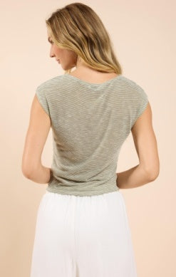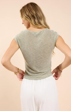This Part of Me Wide Neck Knit Tank is a must-have addition to your wardrobe. The sage green stripes and round neckline add a touch of elegance, while the comfortable and soft knit material make it perfect for everyday wear. Upgrade your style game and experience the perfect fit with this tank top.